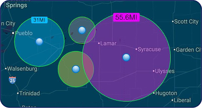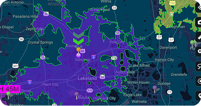 Measure reach with polygons that display how far teams can travel within specific drive times, expressed in hours and minutes.