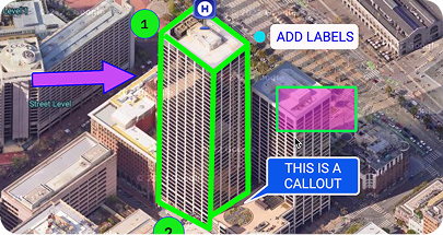 Highlight key areas with shapes, labels, text, or icons to make maps more informative for reports and client presentations.