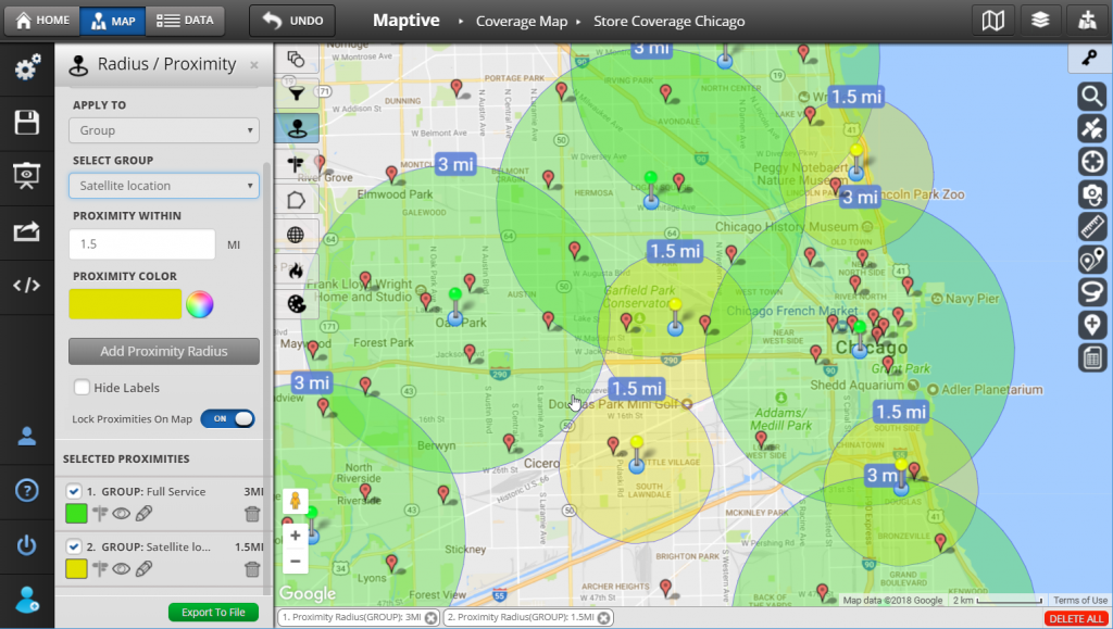 STEP #3: Use Maptive’s filters to get the data visualization you need and export.