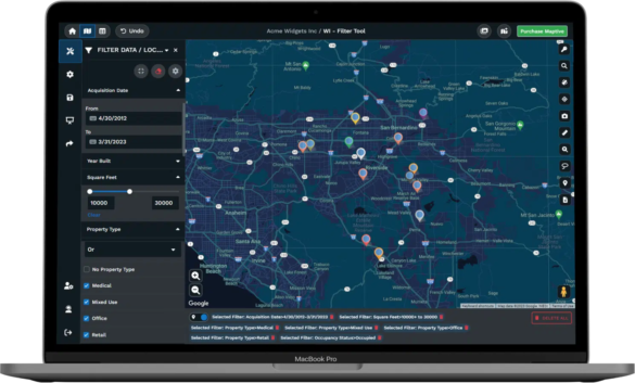 | Spatial Analysis | Use radius mapping, lasso selection, and proximity analysis to segment data geographically. Calculate distances between locations instantly. Export points within any boundary. Filter results by category, number range, date, or custom criteria with real-time map updates. |