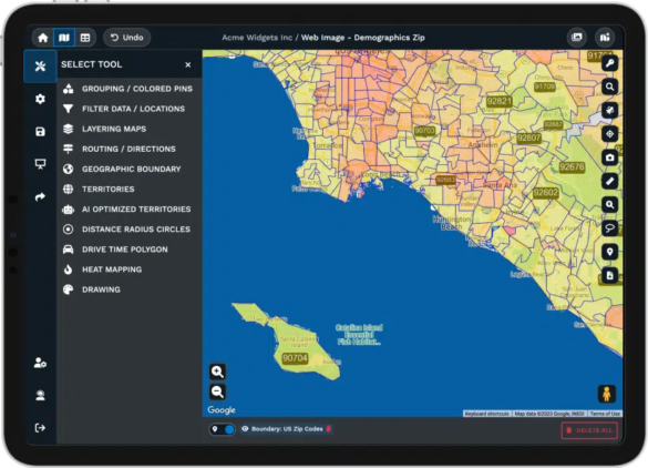 | Territory Management | Build balanced territories using automated optimization that factors drive time, workload, customer density, and revenue potential. Draw custom boundaries or use 43,000+ preloaded ZIP codes, counties, and census tracts. Companies report 75% faster planning and 15% revenue growth. |