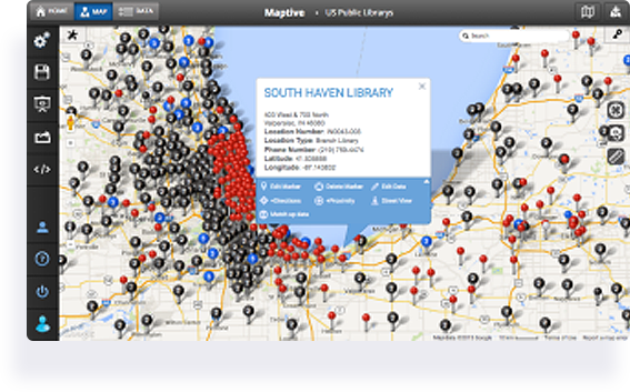 Follow the steps below to get started with Maptive. Once complete, each spreadsheet column will be represented by a marker on the map, making it easy to start analyzing and discovering new opportunities buried in your data.
