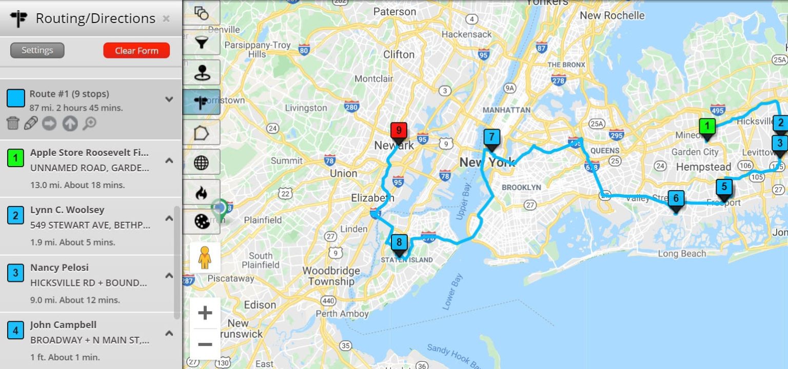 Do you need to drive to multiple sites for fieldwork? Or do you need to travel to conduct survey research? Even class excursions can be planned with Maptive’s route optimizer. Simply click on any data point on your map and add it to the route optimization and directions tool. You will get turn-by-turn directions as well as the option to optimize for the most optimal route between 20+ locations. Add over 70 stops to your route if needed.