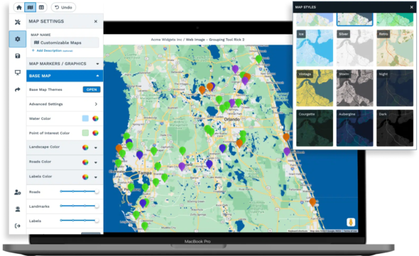 | Custom Branding | Professional customization without technical complexity. Change colors, add logos, and style markers using simple menus. Export publication-ready maps instantly. | Full styling, but not simple for end-users. | Moderate, but with a dated interface. | Few customization options. |