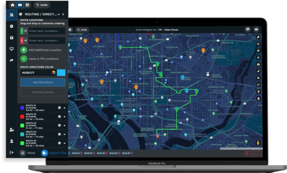 Route planning has a bad reputation for draining time. Manual tools expect you to enter stops one by one, then recalculate every time your list changes. Maptive’s route tools automatically order up to 100 stops by fastest travel time, factoring in traffic and service windows if needed.