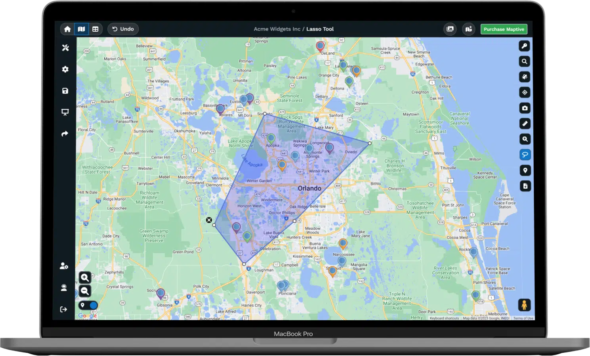 | Max Data Size | Map your entire prospect database without slowdowns. We handle 100,000 points while staying fast. Google Maps infrastructure keeps performance steady. | Performance drops with high volume (1,000+ points). | Capped at 15,000 points per map. | Adequate for typical use, brief slowdowns with large data. |