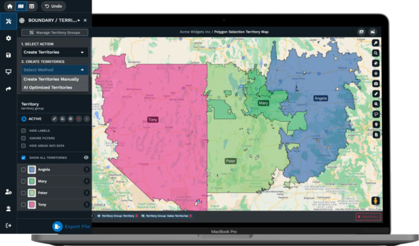 Planning sales regions by hand often leads to overlap, confusion, or unbalanced coverage. With Maptive’s territory tools, you can quickly draw, split, and merge areas on the map, even as customer and sales data change.