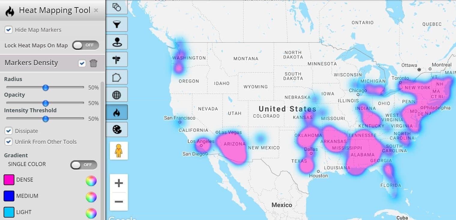 As you can see, using your location data to create a geo map is extremely easy. Here are three types of maps you can make with Maptive: